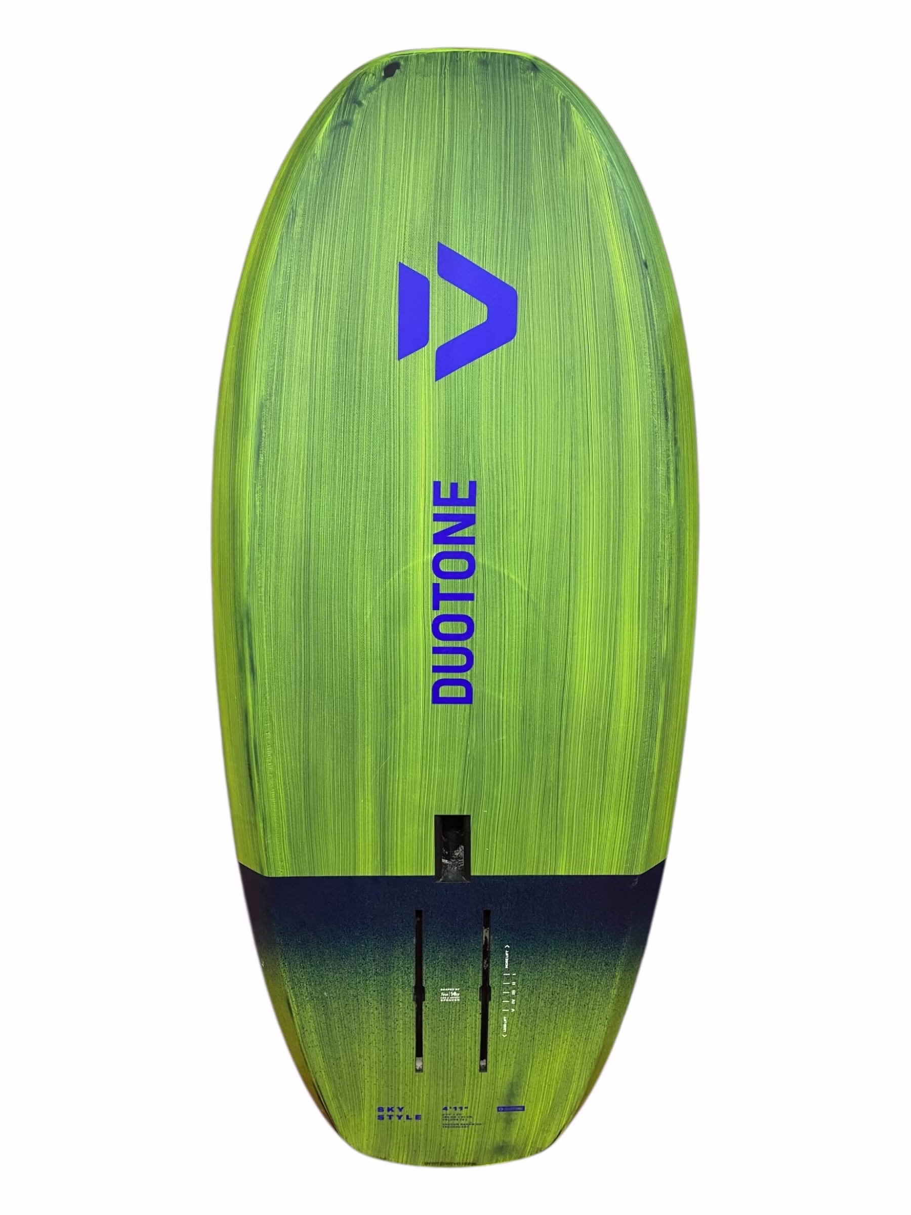 | 4'11" | 75 L | 24'' / 61 | 4'11'' / 150 | 6.23 | 2X US Foil Tracks | < 85 kg | 3X Duotone Fußschlaufen | 389C / 072C |