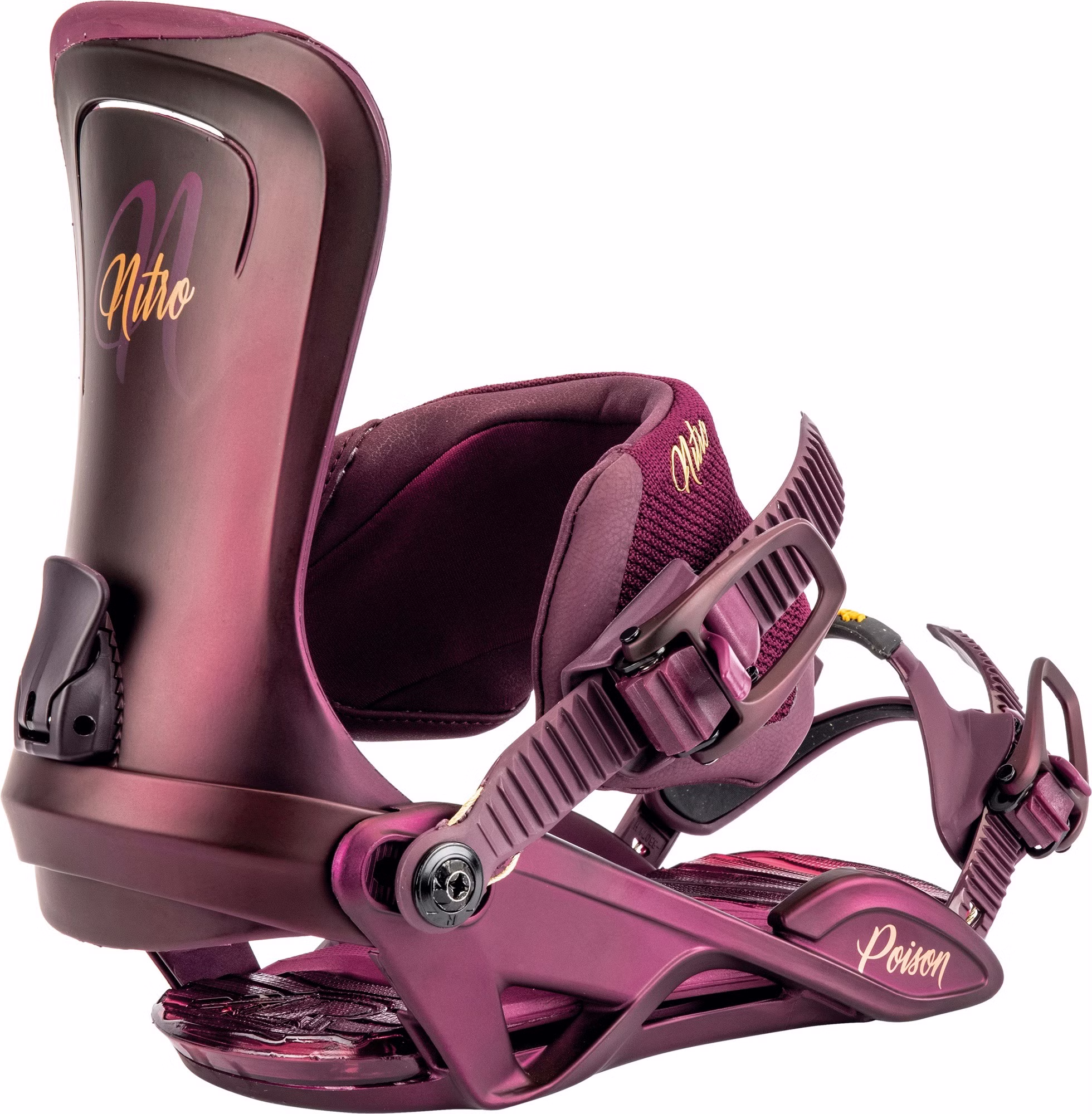 Die überragende Präzision und Passform dieser erstklassigen, vielseitigen Damenbindung bietet die Kontrolle und Haltbarkeit, die Snowboarderinnen auf höchstem Niveau benötigen, um jedes Terrain zu erkunden. Die leichtgewichtige Poison Snowboardbindung für Frauen bietet mit ihrem leichten Stealth AIR Women's Base Frame und dem Catalyst Highback eine professionelle All-Mountain Mischung aus Response und Fersenhalt. Darüber hinaus werden deine Füße und Knie durch die Dual AIR Dämpfung und das 3° Canted Footbed ein neues Komfortlevel erleben. Gleichzeitig ermöglichen die Forged Aluminum Speedwheel Buckles und Cable Reinforced Connectors und Ratchets, dass du die ganze Saison über mit Vertrauen fahren kannst. Der Nitro-exklusive Übergrip Toe Strap mit Vibram© EcoStep™ Gummi und die Pre-mium Hold Ankle Straps bieten den präzisesten Halt auf dem Markt und ergeben die beste Bindung, die es gibt!