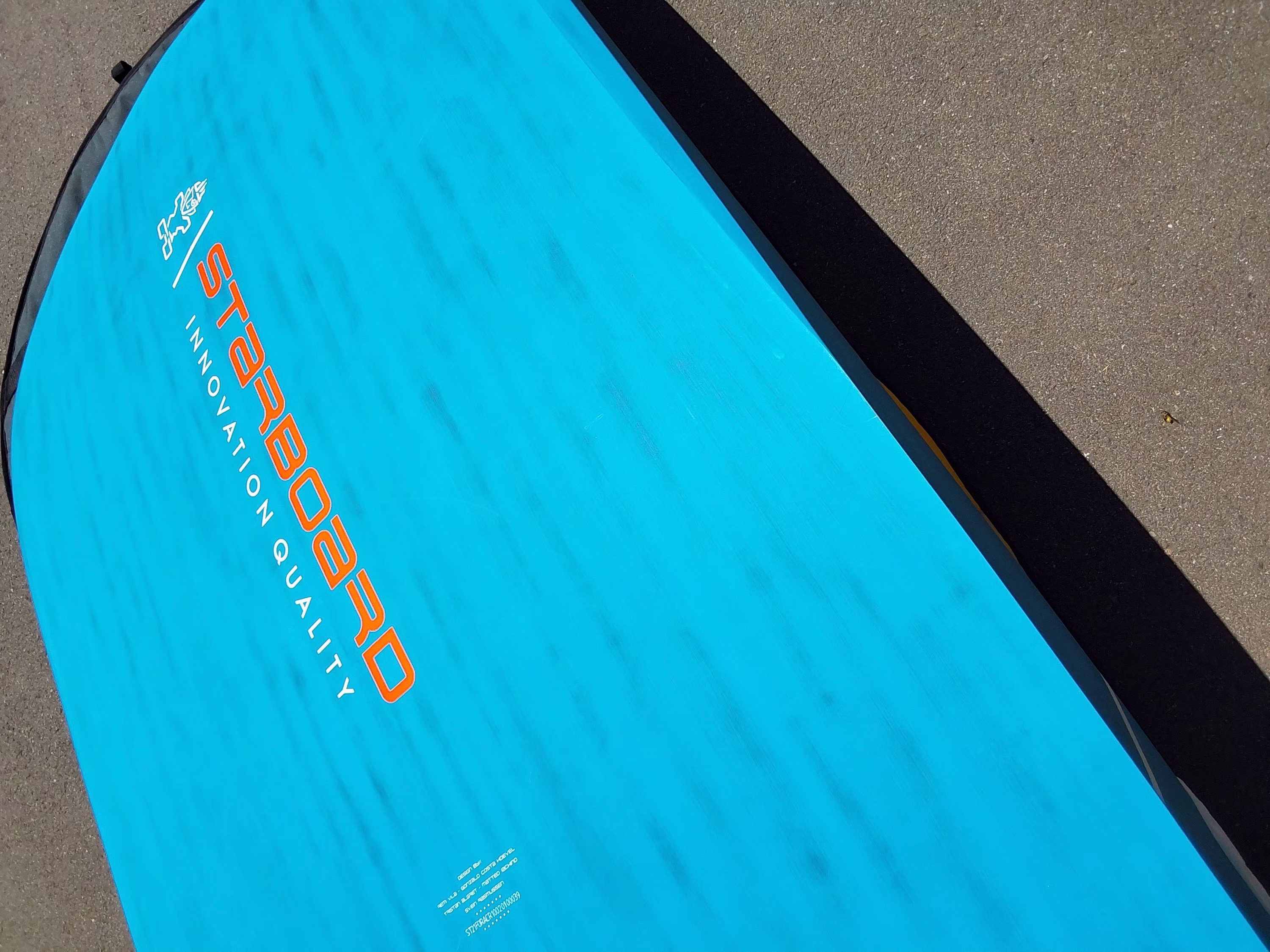 Lieferumfang: 1x Windsurfboard mit Fußschlaufen (siehe Tabelle) inkl. passender Boardbag // Zustand: gut, Kratzer an der Nose (siehe Fotos)